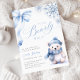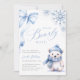 Celebre seu pequeno no caminho com este adorável convite de Chá de fraldas de Espera. Projetado com flocos de neve de cor aquosa, um urso de inverno bonito, e um arco azul delicado, é perfeito para uma celebração de inverno aconchegante. Uma escolha doce e elegante para o chá de um bebê.