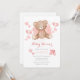 O convite é simples, elegante e bonito. Na frente do convite está um ursinho de pelúcia rodeado por estrelas enroladas e balões. O convite diz "Chá de fraldas" na frente, e "Por favor, junte-se a nós para homenagear"