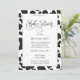 Celebrar um chá de fraldas veloz com este elegante convite de impressão de vaca! Apresentando um padrão de vacas brancas e pretas chic complementado por delicados toques com a tipografia moderna, esta design é perfeita para honrar a futura mãe no estilo. Ideal para uma comemoração inspirada na fazenda ou temerária, este convite dá o tom para uma reunião quente e memorável. Personalize o texto com os detalhes do evento para torná-lo exclusivamente seu.