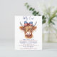 Convide amigos e família para comemorar a chegada do seu novo bebê com nossos adoráveis convites com tema de vaca com um lindo bezerro terrestre vestindo uma arco patriótica de bandeira americana. A design é perfeita para o chá de fraldas de 4 de julho ou de verão, e é excelente para os militares ou que procuram mostrar seu orgulho americano. O esquema de cores vermelho, branco e azul seguramente pega o olho e marca o tom para uma ocasião divertida e festiva. Não perca este convite especial e encantador para animais de fazenda, será um favorito entre amantes de vacas! COPYRIGHT © 2023 Judy Burrows, Black Dog Art - Todos Os Direitos Reservados. Vaca Cura Cura Girassóis Flores Modernas Simples Convite Para Chás de fraldas