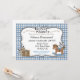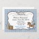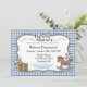 Este convite vem com um cavalo de balanço de brinquedo, botas de cowboy com uma corda de cowboy parada atrás e estrelas com impressão de vaca no centro. A borda externa é xadrez azul e você pode adicionar texto à parte frontal e traseira ou remover o que não é necessário.