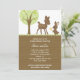 Adorável convite de chá de fraldas com veado e coelho bonitinhos.