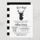 Ajuda do vamos para celebrar a adorável mãe para estar com este convite para chá de fraldas de cervos preto e branco!
