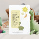 Prepare-se para celebrar com este adorável convite para Chás de fraldas com um pequeno e doce dinossauro! Este charmoso design mostra um dino alegre de bolinhas verde do exército, segurando alegremente três balões mylares de hélio em forma de sol, lua e estrela. Os detalhes do chá são apresentados numa fonte divertida e moderna, perfeitamente alinhados para uma leitura fácil. Além disso, a parte de trás do convite imita as cores e padrões vibrantes do dino, acrescentando um toque encantador. Faça do seu chá de fraldas um acontecimento memorável com este convite encantador que promete um bom momento! Com sua design divertida e convidando encanto, é certo que todos estão no humor para celebrar a chegada do seu pequeno! Peça o seu hoje e deixe as festividades começar!