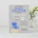 Convite para chá de fraldas temático do Dinossauro Fofo com texto personalizável. No verso, o Dino está dizendo uma pequena mensagem que você pode mudar ou remover.