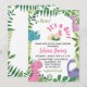 Nosso convite ao Chá de fraldas Dinossauro é a maneira perfeita de convidar amigos e familiares para sua festa. O design apresenta o tema safari, com bastante espaço para todos os detalhes importantes, como data, hora e local da festa. Perfeito para qualquer idade, gênero e tema do partido, é certo que impressiona seus hóspedes e os entusiasma pela celebração.