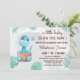 Cartão modelo de convite para chá de fraldas de convite para o do Dinossauro Cute com ilustração desenhada à mão de um Dinossauro verde giro e elementos da selva. Cartão de convite perfeito, neutro em termos de gênero, projetado para você.