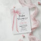Convite para chá de fraldas com arco de coquete rosa-d'água.