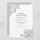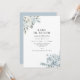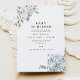 Este chá de fraldas apresenta flores elegantes, azuis e brancas e uma fonte elegante e minimalista. Este convite é perfeito para qualquer evento simples e clássico.
