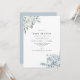 Este chá de fraldas apresenta flores elegantes, azuis e brancas e uma fonte elegante e minimalista. Este convite é perfeito para qualquer evento simples e clássico.