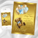 Chá de fraldas de ursinho de pelúcia com adorável ursinho de pelúcia e bonito balões azuis e dourados em um lindo fundo de ouro. Este convite para chá de fraldas de ursinho de pelúcia é facilmente personalizado para o seu evento simplesmente adicionando os seus detalhes.