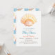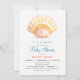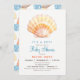 Convite de chá de fraldas de Beashell de Praia de Verão Náutico. Convide recursos azuis, laranja e conchas de pêssego.