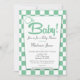 Um convite de chá de fraldas neutro para mulheres, verde-menta, "Oh Baby", com um fundo branco e de menta.