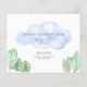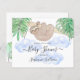 O convite para chá de fraldas deste rapaz do orçamento é decorado com uma preguiça-bebê sorridente pendurada num galho, emoldurada com folhas verdes da selva de aquarelas e nuvens azuis. O reverso é decorado com folhagem tropical, uma nuvem azul e espaço para sua informação. Todo o texto é personalizável. Porque nós criamos a nossa trabalho de arte, você não encontrará esta imagem exata de outros designers. Original Watercolor © Michele Davies.
