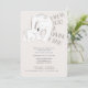 Um convite para chá de bebê bonito, com urso polar e filhote. O cabeçalho diz "Mamãe Urso está tendo um bebê" em uma letra manuscrita lúdica.