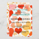 Um convite de chá de fraldas muito único e elegante, com um lindo fundo vermelho e corajoso, com sombra de folhas verdes. Comece sua ocasião de uma maneira muito especial.