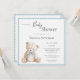 Adorável convite de chá de fraldas de ursinho de pelúcia desenhado à mão. As cores suaves simples definem o tom de um doce chá de fraldas temático. Um convite tão doce e simples para esse evento especial. Coordenar o quadro azul escalado termina este adorável convite.