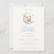 Este design de convite é perfeito para um bebê rapaz, elegante, sonolento, tema de chá de fraldas de ursinho de pelúcia. O ursinho de pelúcia na lua é uma imagem de uma pintura a aquarela. As cores deste convite incluem tons de azul claro e azul empoeirado.