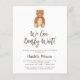 Este chá de fraldas do orçamento é decorado com um bonitinho ursinho pintado à mão. O texto castanho diz: "Podemos esperar muito!" Este convite é excelente de um chá de fraldas neutro em termos de gênero. Facilmente personalizável. Use a Ferramenta Design para alterar o tamanho, o estilo ou a cor do texto. À medida que criamos a nossa trabalho de arte, não encontraremos esta imagem exata de outros designers. Original Watercolor © Michele Davies.
