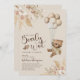 Urso elegante convida para um banho de bebê boêmico, com um fundo castanho claro, um ursinho de bebê de aquarela, balões, erva e florais de boho pampas rústico, além de um modelo de chá de fraldas moderno que é fácil de personalizar.