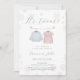 Celebre os seus pequenos flocos de neve com este chá de fraldas de gêmeos de inverno! Apresentando um suéter azul-aquarela e um vestido cor-de-rosa, este design capta a magia da estação em tons pastel suaves. Perfeito para chás gêmeos.