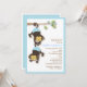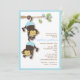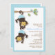 Dois adoráveis macacos-bebê em fraldas azuis pendurados num galho florescente fazem disto um doce convite para o chá de fraldas quando você sabe que há dois meninos no caminho.