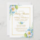 Cartão de Convite para Chás de fraldas Floral e Dourado Azul de Cores Aquáticas - Script Dourado