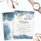Estrelas de lua de ouro azul de aquarela convite para chá de bebê menino.