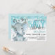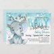 Um convite para o chá de fraldas de elefantes. As cores incluem azul-aquarela, branco e cinza. Excelente para chás temáticos de animais selvagens ou safari.