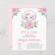 Personalize este Bebê Elefante Girly, Cor Flórida Rosa Tropical, é um Chá de fraldas Girly ou Chamadas de Prévia Bebê em fundo branco com sua mensagem e detalhes. Este convite chico inclui flores cor-de-rosa pinceladas e um verde botânico moderno com tipografia fofa e elegante para a celebração especial da Mãe a Ser.