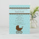 O Elegante chá de fraldas de Carruagems convida o seu evento para começar com nosso convite elegante de Chá de fraldas apresentando um fundo úmido de cor azul com uma linda carruagem de bebê marrom na parte inferior. Apenas personalize com suas informações e você está pronto para ir! Itens correspondentes, incluindo chás de fraldas postais, adesivos de favoritos, cartões de agradecimento e obrigado que você também está disponível em nosso compro. ©BabyStarDesign