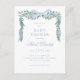 Elegante Arco Azul com Cartaz de Convite para Chá de fraldas Greenery Boy. Clique no botão personalizar/editar com a ferramenta design para personalizar este design com os detalhes do evento.