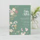Elegante Boho Wildflower Invitation Está procurando um tema de chá de fraldas bonito para uma mamãe a ser? Veja este Convite Elegante para Chás de fraldas de Boho Wildflower. Ele apresenta um belo buquê de flores silvestres aquáticas em um fundo verde. No verso, você encontra um padrão floral fofo com um fundo rosa. Mas você pode mudar a cor de fundo na ferramenta design. Você pode adicionar seus próprios detalhes muito facilmente usando os campos modelo. Temos uma coleção inteira de itens e suprimentos de festas com este tema maravilhoso de flor silvestre com diferentes opções para convites. Você pode visualizá-los abaixo do produto (Clique no link abaixo do cabeçalho "Outros produtos nesta coleção"). Feliz personalização e festa de excelente!