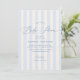 Celebrar os pais com este Convite de Chá de fraldas Elegante Blue Stripes Boy. Apresentando listras azuis clássicas e roteiro moderno, este design eterno é perfeito para dar boas-vindas a um menino de estilo. Personalize com os detalhes do evento para criar um convite chic e ponderado para amigos e familiares. Ideal para chás tradicionais, festas de jardim ou reuniões elegantes que destacam um tema refinado e encantador de bebês.