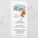 Um convite adorável para um chá de bebê com macaquinho na fralda com um pino de fralda azul balançando de um ramo de árvore e texto azul de bebê. Convites completos com envelopes e sua escolha de tamanho e papel.