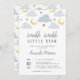 Esse convite é adequado para a mãe esperar um menino e apresentar nuvens azuis e ilustrações estelares. O texto deste modelo permite personalizar seus recursos. A cor pode ser alterada junto com o tamanho do texto, o texto, a fonte e o modelo clicando no link personalizar.