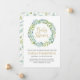 O Elegante convite para chás de fraldas florais apresenta uma coroa de aquarela eucalipto e verde com as palavras chá de fraldas em letra de escrita. A parte traseira da carta é decorada com o padrão de folha. Personalize-o com os detalhes do seu chá de fraldas.