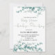 Eucalyptus Greenery Chá de fraldas Convite! Apresentando folhas de eucalipto suaves e exuberantes e um design sereno e inspirado na natureza, este convite é perfeito para o chá de um bebê. A elegante disposição minimalista combina verdes gentis com um toque de sofisticação