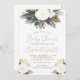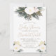 O vamos ajuda a comemorar a adorável mãe a ser com este belo convite para o chá de fraldas de inverno com flores brancas de cor aquática cada vez mais verdes.