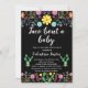 Procurando um doce convite de chá de fraldas para a festa mexicana? Este design ousado apresenta uma cor d'água brilhante no topo e base do convite, assim como alguns pequenos cactos. A parte de trás do convite é um padrão riscado. O convite para a festa ou chá de fraldas mexicano desta garota é muito fácil de personalizar. Para mais designs neste tema, visite a loja.
