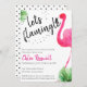 Folhas de flamingo e palma, cor-de-água, cor-de-rosa, com suporte a padrão de bolinhas preta, convite a chás de fraldas. Personalizar texto, estilo de fonte, cor e tamanho.
