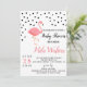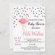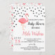 Adicione o flamingo flare ao seu chá de fraldas com este convite de chá de fraldas de flamingo e pontos pretos.
