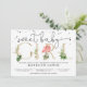 Convite moderno com uma sensação tropical apresentando um flamingo rosa.