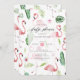 Convite para Chá de fraldas Floral com lindos flamingos cor-de-água rosa com palma