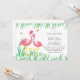 O encantador convite ao chá de fraldas moderno apresenta flamingos cor-de-rosa e borboletas, tanto na frente como no verso. Clique para personalizar ainda mais para alterar o estilo, o tamanho ou a cor da fonte.