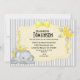 Convite neutro para Chás de fraldas com fundo de faixa de cinza e quadro floral amarelo. Chá de fraldas Invite apresenta uma doce cinza de elefante bebê dormindo. Mamãe ficará entusiasmada com este convite para chá para uma garota ou um garoto. Personalize com seus detalhes.
