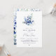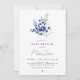 Chá de fraldas floral azul em estilo minimalista com buquê de flor azul e padrão de volta. Você pode personalizar este convite com seus próprios detalhes na seção "Personalizar este modelo".