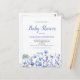 Cartão-postal de convite para chás de fraldas florais azuis. Fácil de mudar o texto. Design de botânica de flor silvestre de cor aquática de tendências.