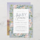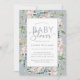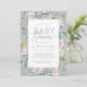 Convite para Chá de fraldas Floral Azul Dusty com foto no verso. Este elegante convite para o chá de fraldas de menino apresenta lindos lírios com cor d'água pintados à mão, flores silvestres azuis empoeiradas, e verde-sábio sobre um fundo azul empoeirado. Esta é parte da coleção Primavera Lily Chá de fraldas.