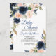 Convite para Chá de fraldas Floral Azul e Blush ma